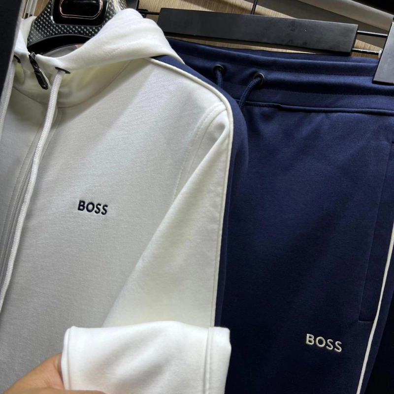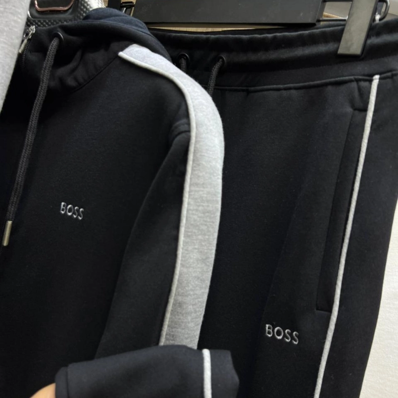 Alliez style et confort avec ces ensembles de survêtement BOSS, parfaits pour un look décontracté haut de gamme. Chaque ensemble est conçu avec des matériaux de qualité et des finitions soignées.