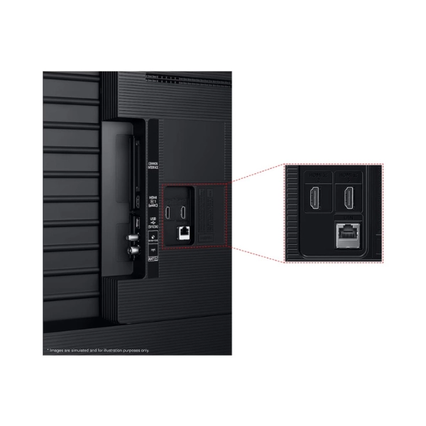 Connectivité Complète : Équipé de multiples ports HDMI (eARC), USB, ainsi qu’une connexion LAN (Ethernet) pour un streaming fluide et sans interruption.